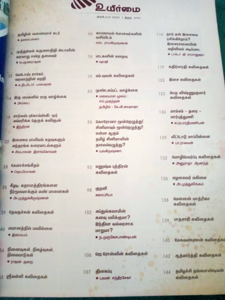 இப்போது மீண்டும் முதலிதழின் அதே வாசனையோடு, காத்திரத்தோடு, நற்கலைஞர்களின் நல்ல படைப்புகளோடு சுவாரசியமான இதழாக வந்திருக்கிறது.