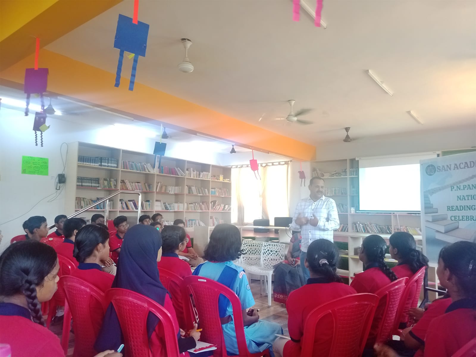 இதனை முழுக்க என்னுடைய பேச்சு, ப்ரசண்டேஷனாக மட்டும் இல்லாமல் எல்லோரும் பங்குபெறும் இயல்பான கலந்துரையாடலாக மாற்றி அமைத்துக்கொண்டு உரையாடினேன். கிட்டத்தட்ட ஐம்பது சதவீதக் குழந்தைகள் ஏற்கனவே பள்ளிப்பாடம் தாண்டிய வாசிப்புக்கு பழகித்தான் இருக்கிறார்கள். ஃபேண்டசி ஃபிக்ஷன், காமிக்ஸ், விளையாட்டு வீரர்களைப் பற்றிய புத்தகங்கள், கதைப் புத்தகங்கள் என்று ரசனை ஒருவருக்கொருவர் வேறுபட்டாலும், பாதிக்குப் பாதி பேர் நிச்சயம் படிக்கிறார்கள் என்பதே நிம்மதியாக இருந்தது.