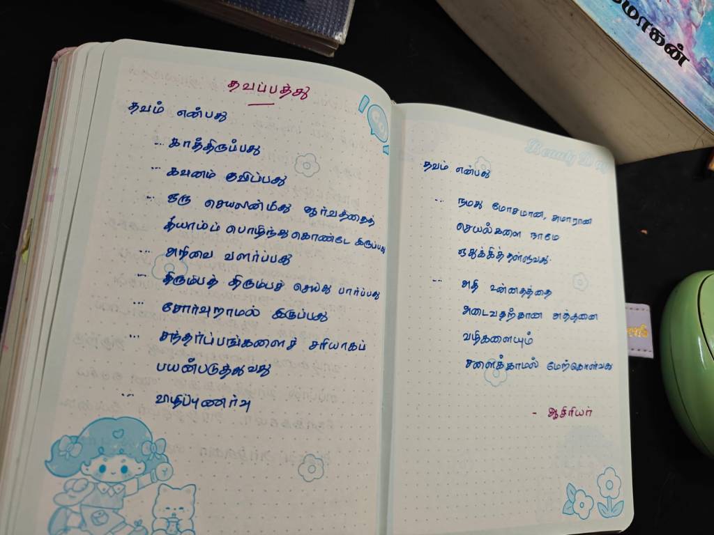 இந்தப் பத்தும் என் அன்றாடங்களை ஒழுங்கு செய்வன. காத்திருப்பு, கவனம், ஆர்வம், அறிவு, தொடர்ந்த ஈடுபாடு, சோர்வின்மை, சரியான பயன்பாடு, விழிப்புணர்வு, மோசமானவற்றை விலக்குதல், உன்னதம் நோக்கிப் பயணித்தல் என்பதை ஒவ்வொரு கணமும் உணர்கிறேன். விழிப்போடு இதனைத்